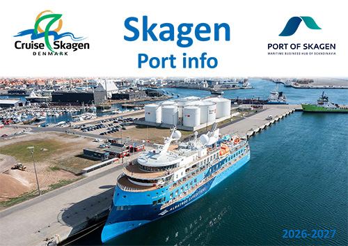 Skagen Havn tilbyder 3 krydstogtkajer. Kaj 9 på 500m med en LOA på 400m og vanddybde på 12m og Pier 10 på 190m med en LOA på 220m og en vandybde på 9m. Fra 2021 tilbyder Skagen Havn en tredje, sekundær krydstogtkaj – Godskajen – kaj 41, der er 295 m lang og kan modtage skibe med en LOA op til 300m. Vanddybde på 13 m og ned til 9,5 m.