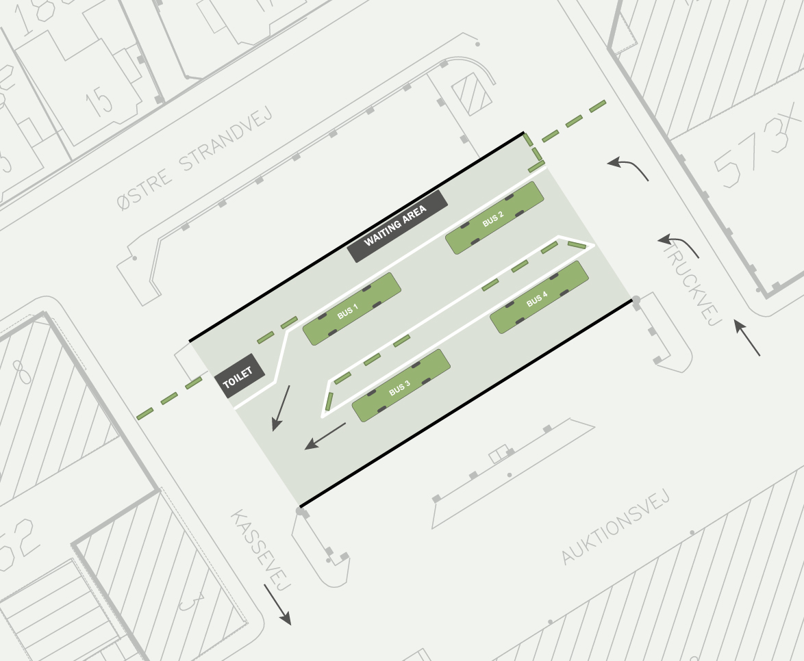 Skagen Havn flytter stoppestedet for shuttlebusserne fra Vestre Strandvej over på en helt ny busholdeplads på et område mellem Østre Strandvej, Truckvej, Auktionsvej og Kassevej. Desuden opfører Skagen Havn ved pladsen en ny toiletbygning.
